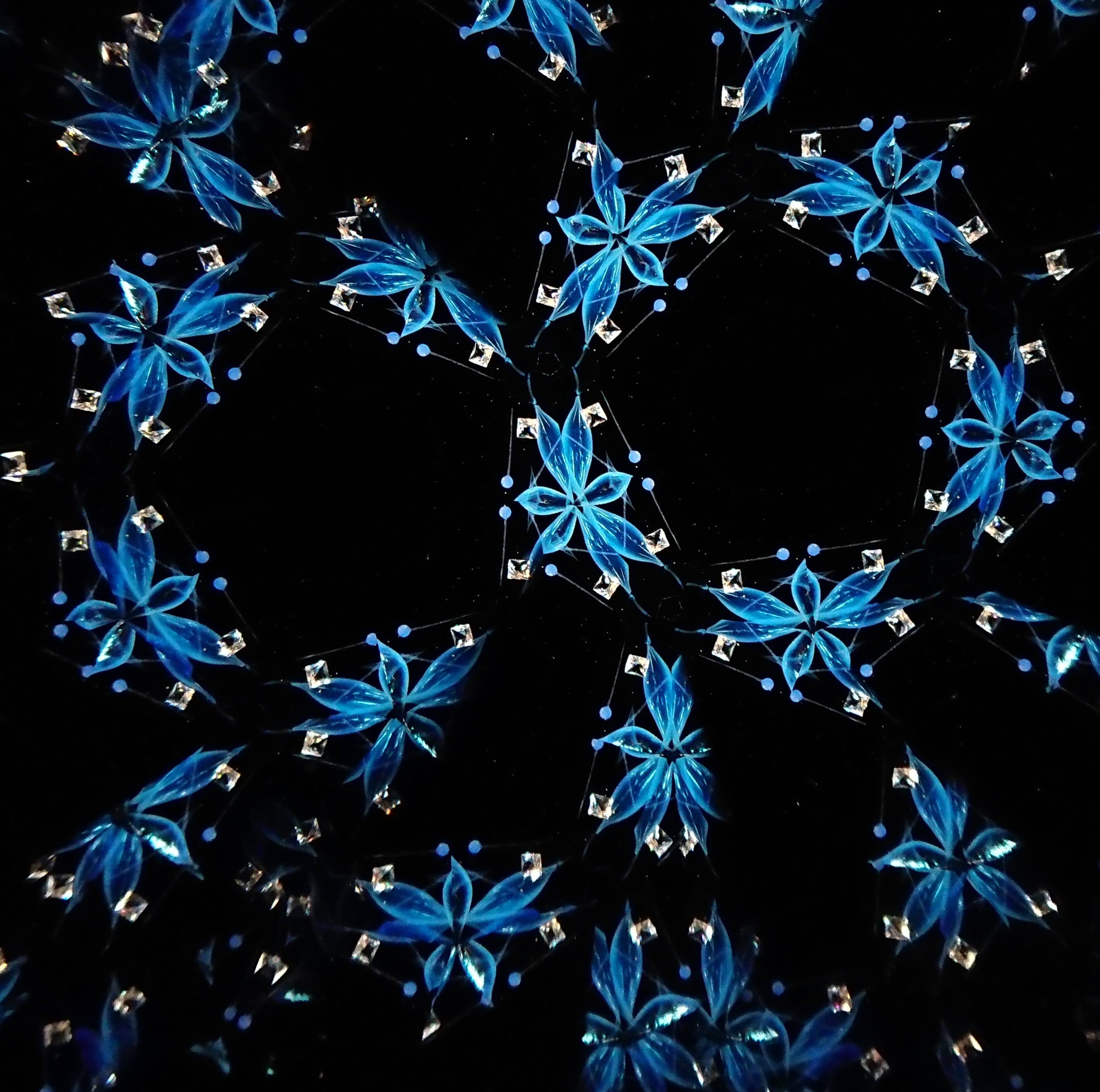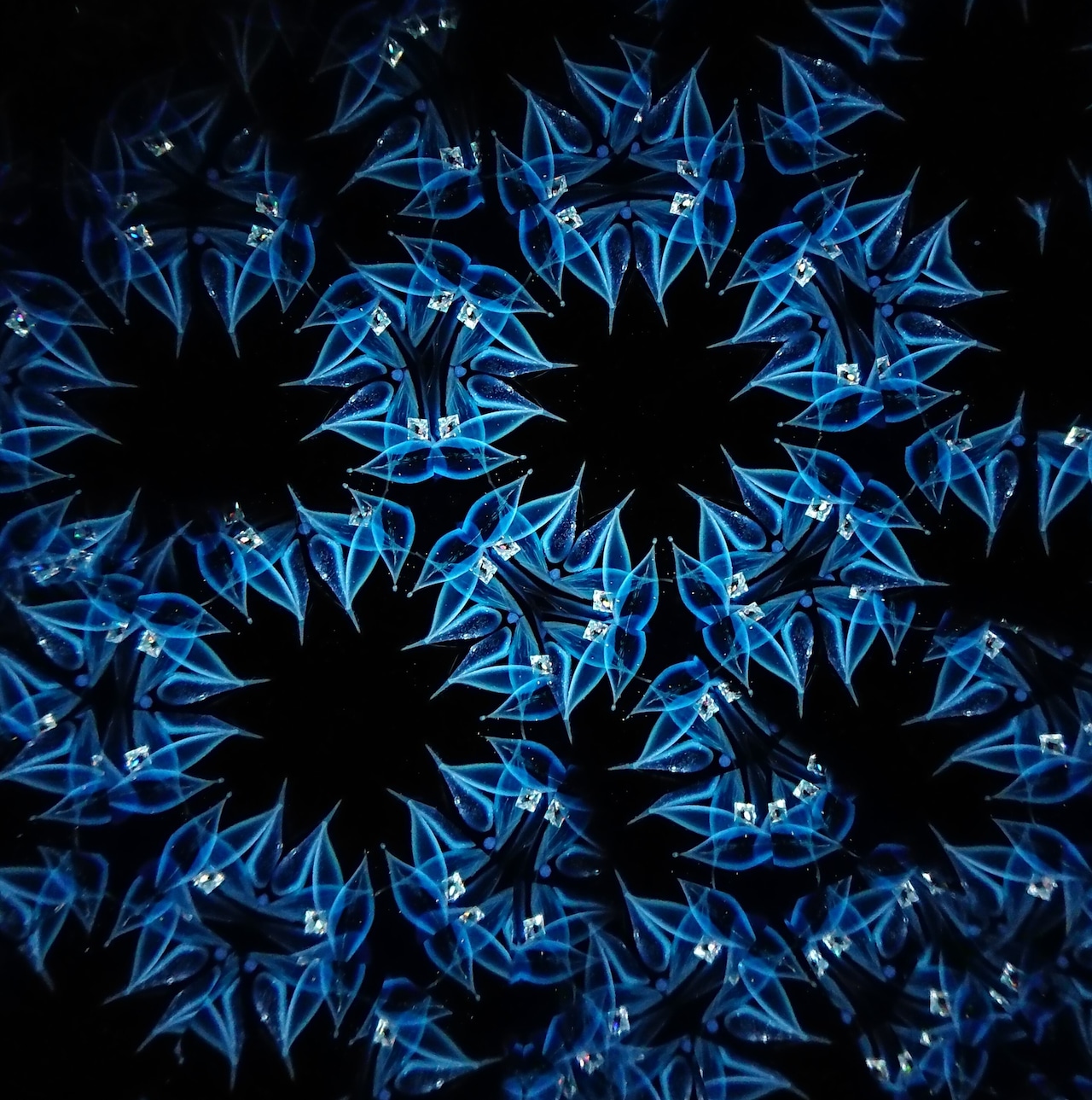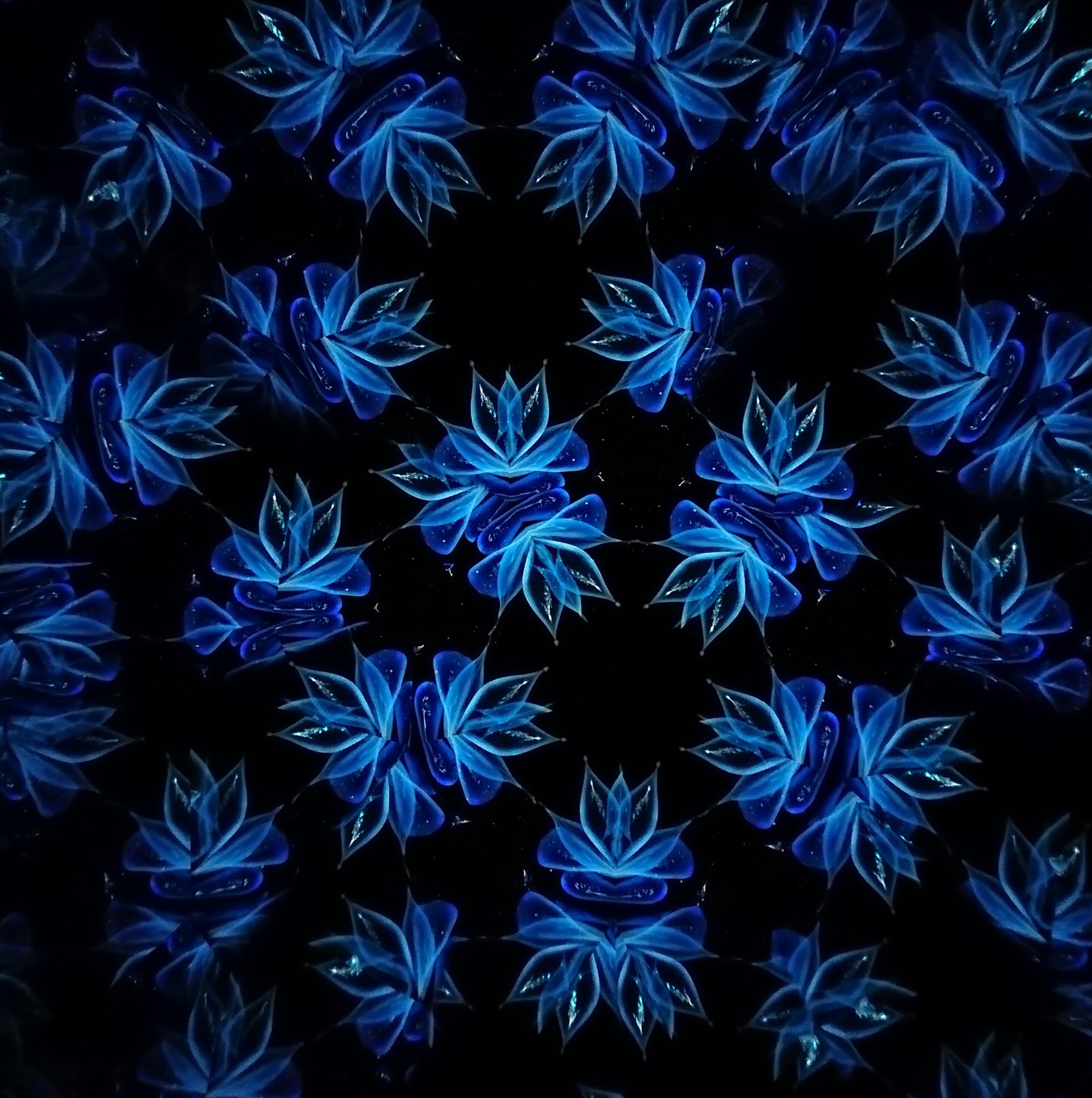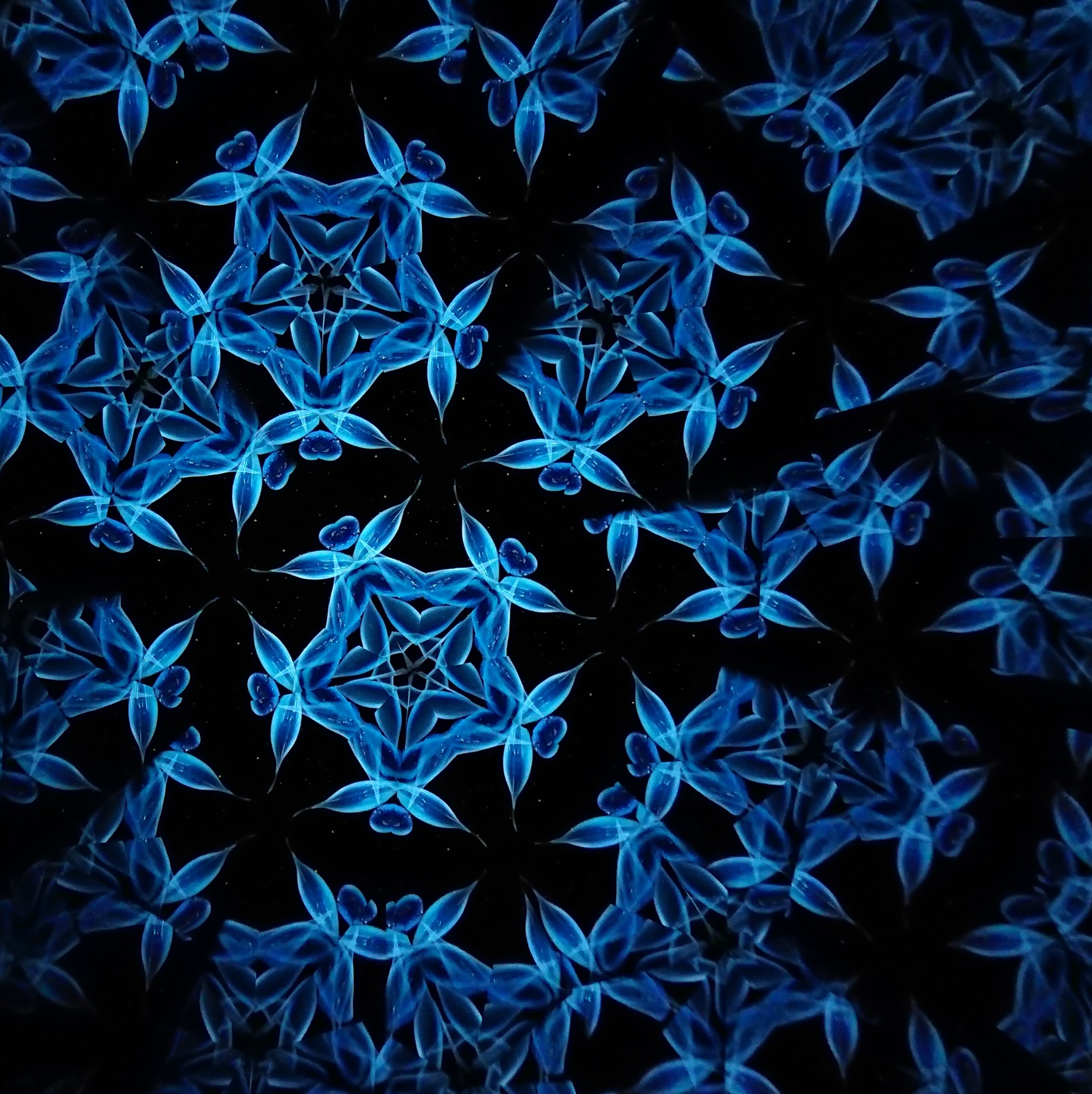 高濃度のグリセリンの中を透明感のある青いオブジェクトがゆっくり動き、変化してゆきます。