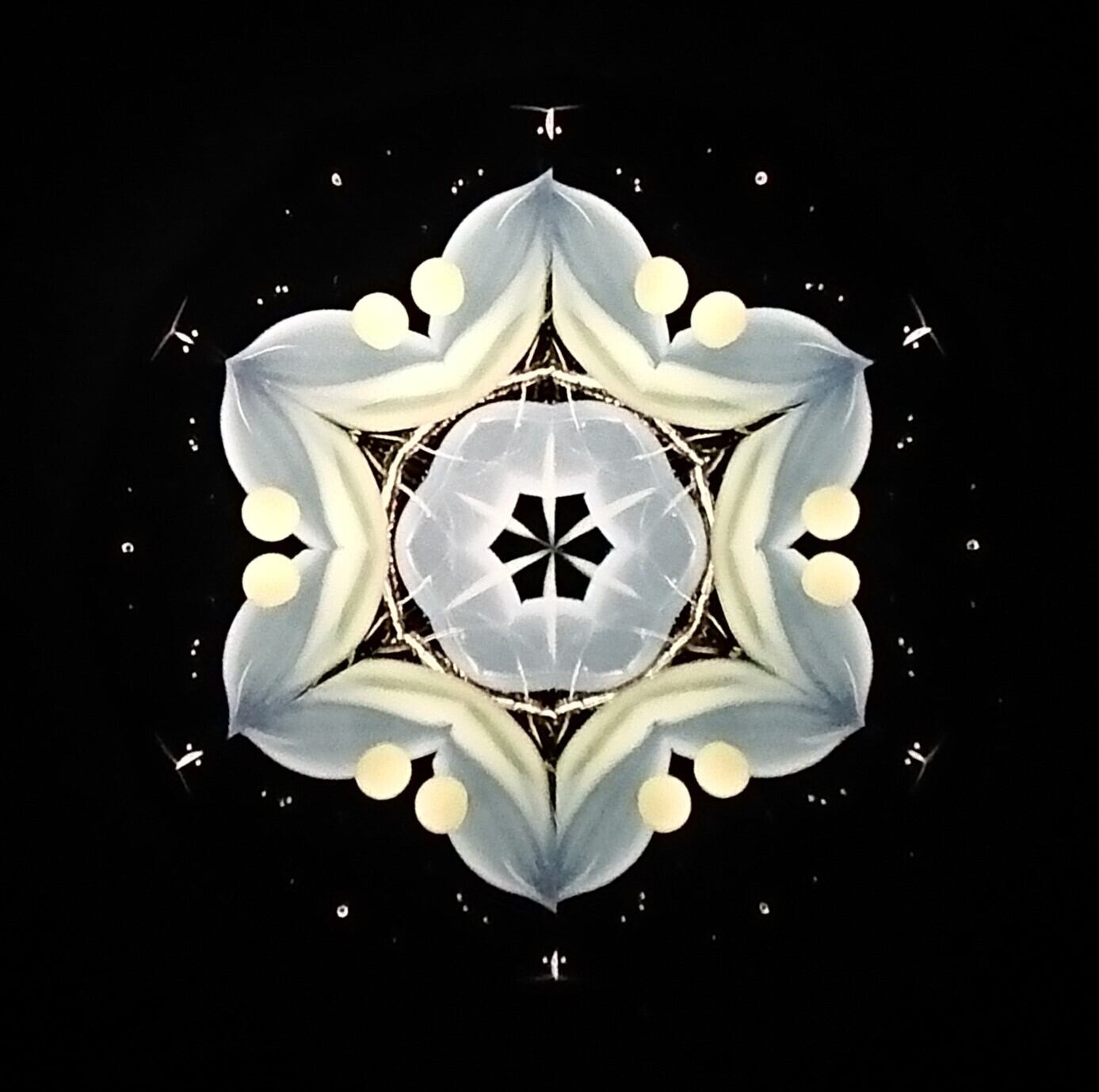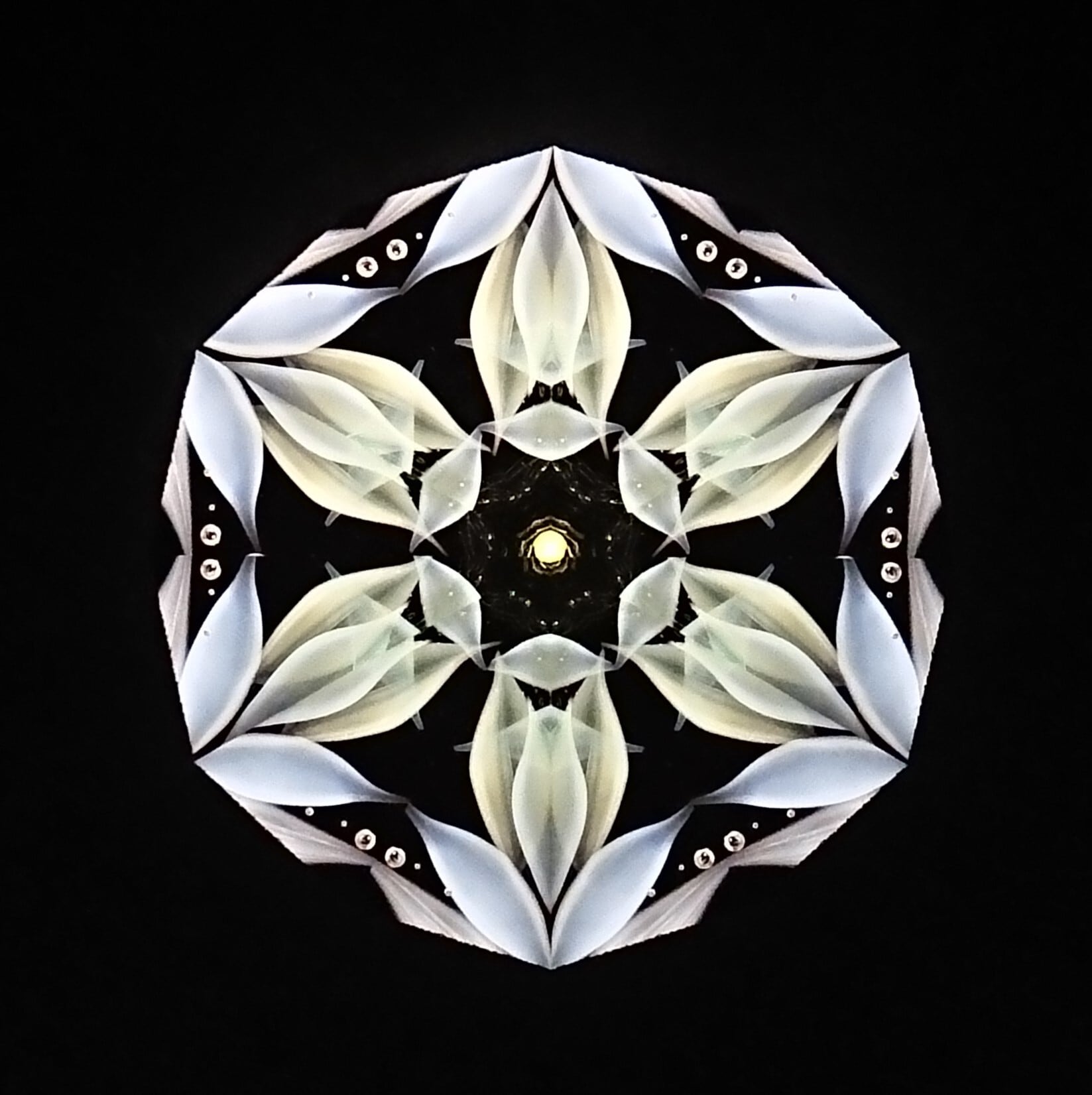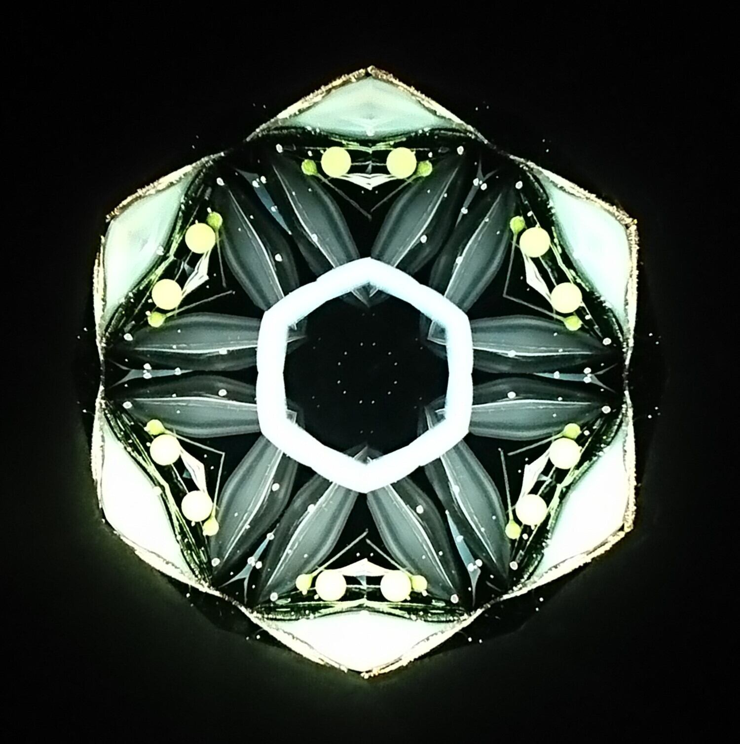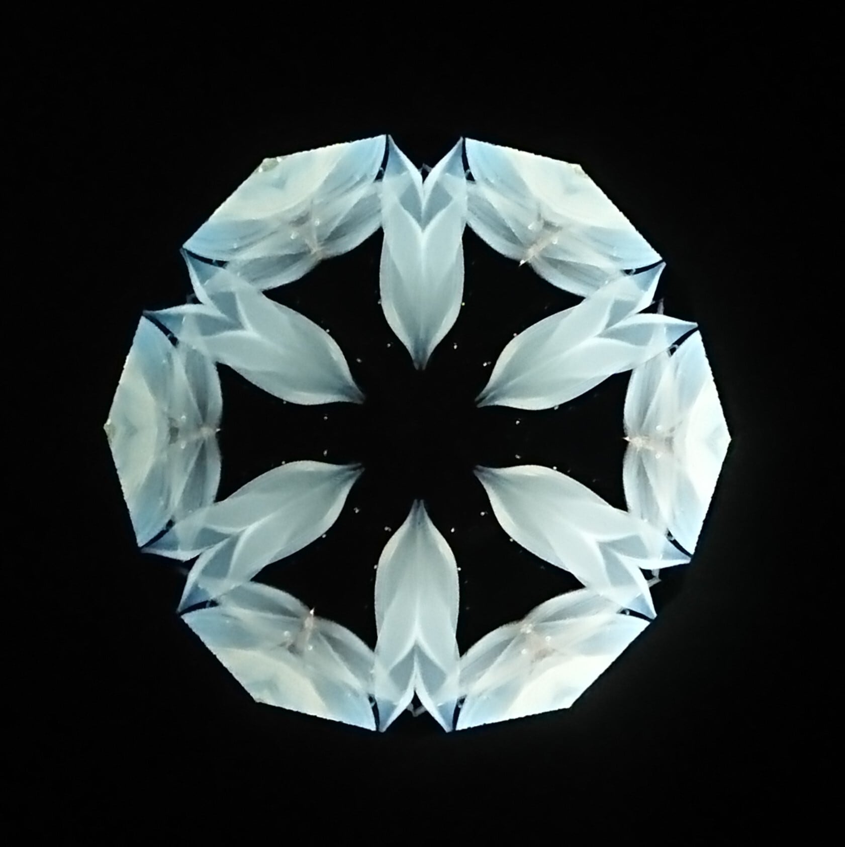 高濃度のグリセリンの中を、半透明の白いオブジェクトが重なり合いながらゆっくり動き、変化してゆきます。