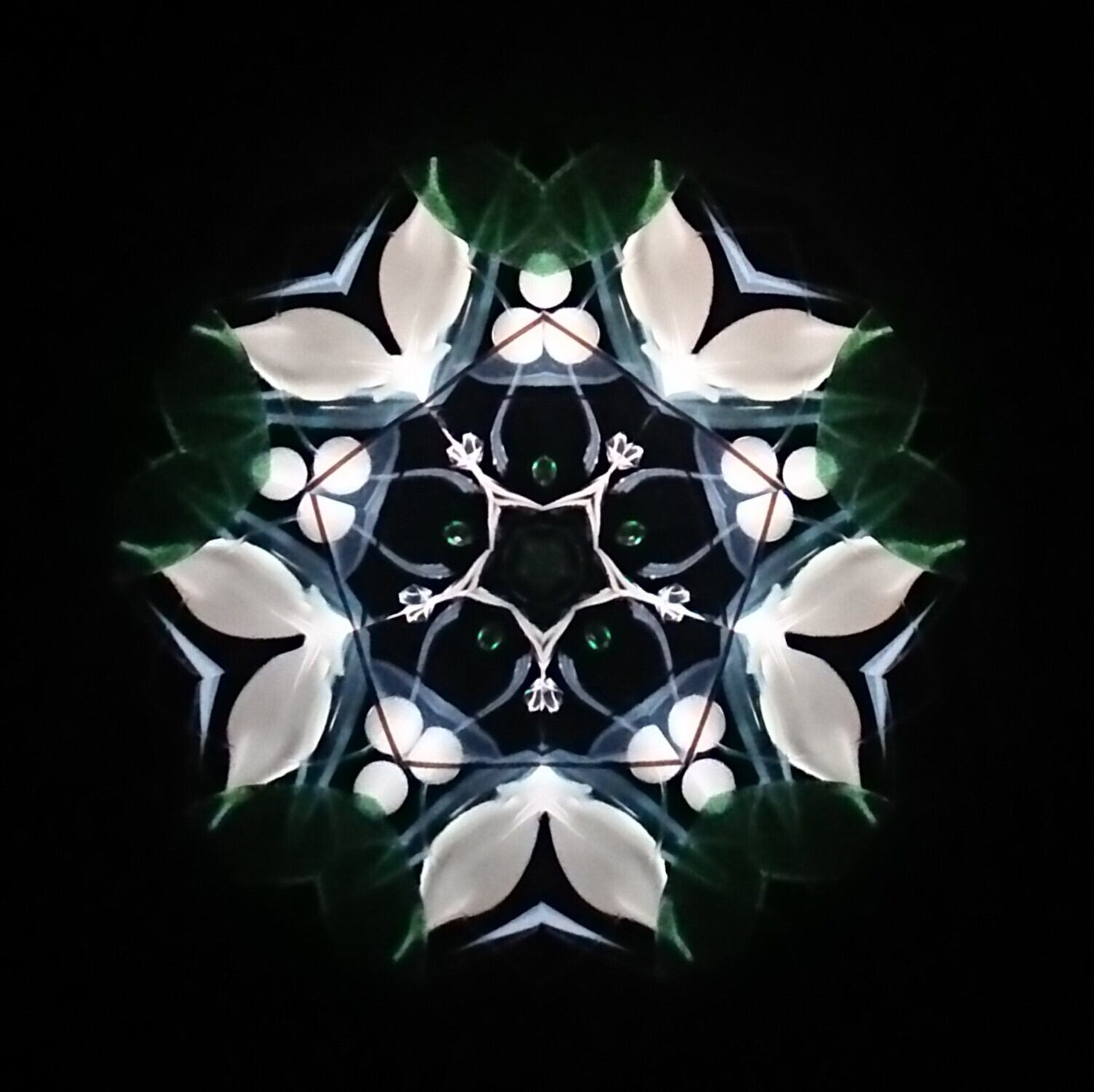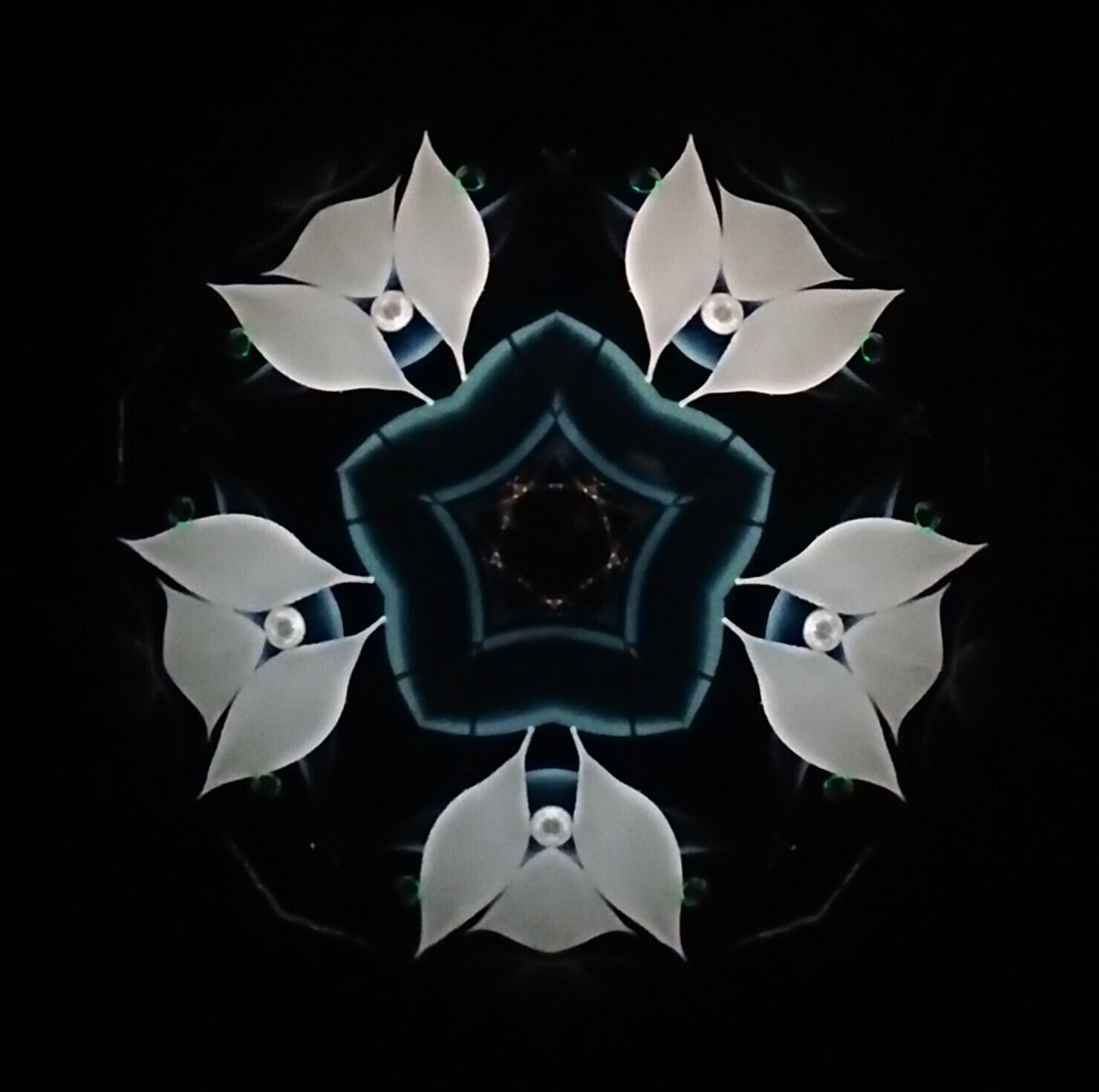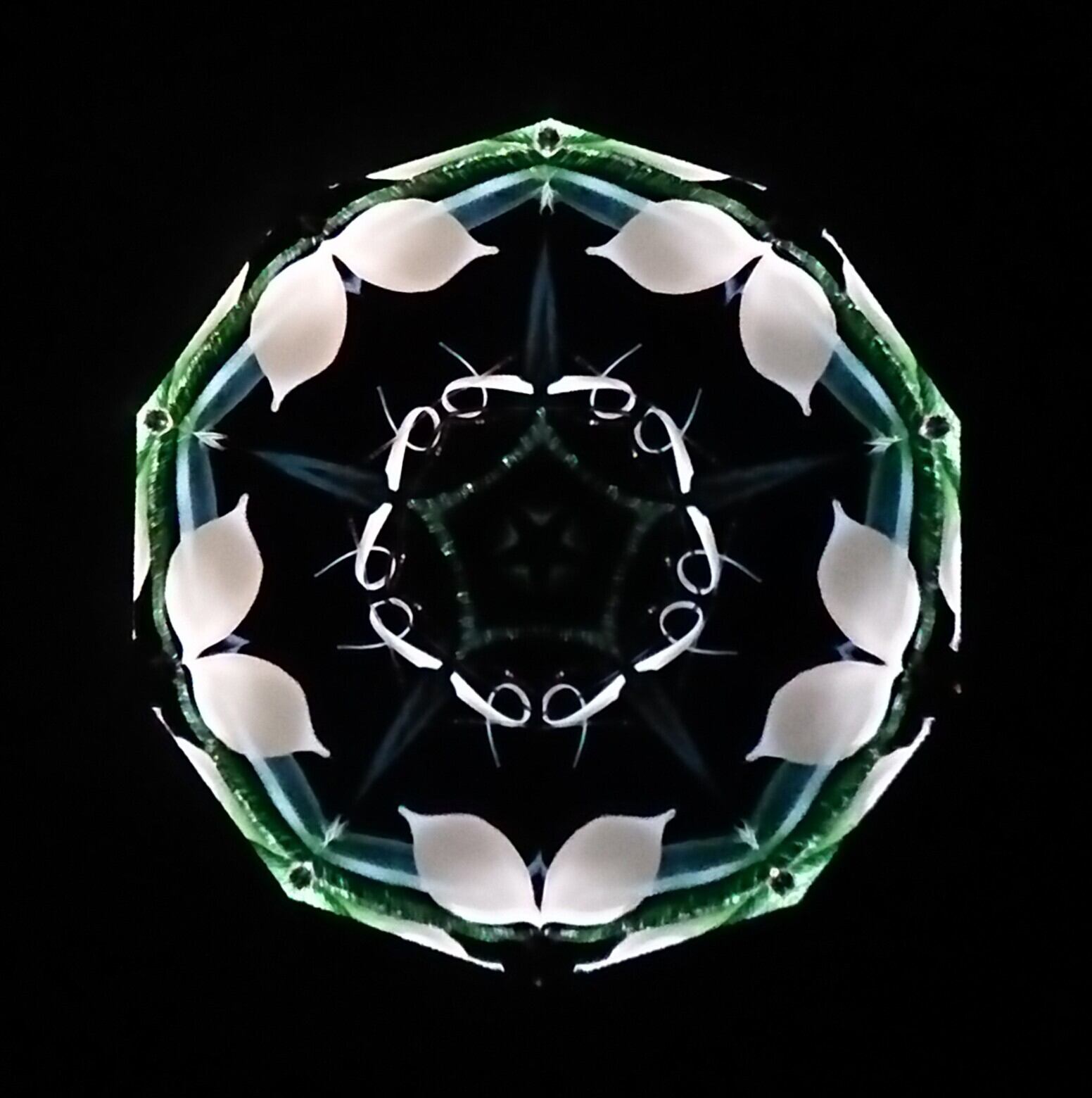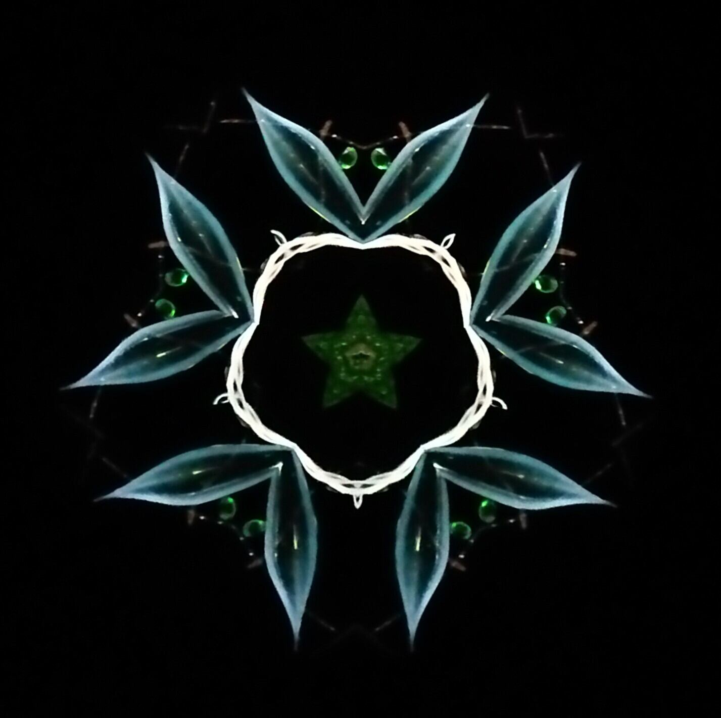 高濃度のグリセリンの中を、白と緑のオブジェクトが重なり合いながらゆっくり動き、変化してゆきます。