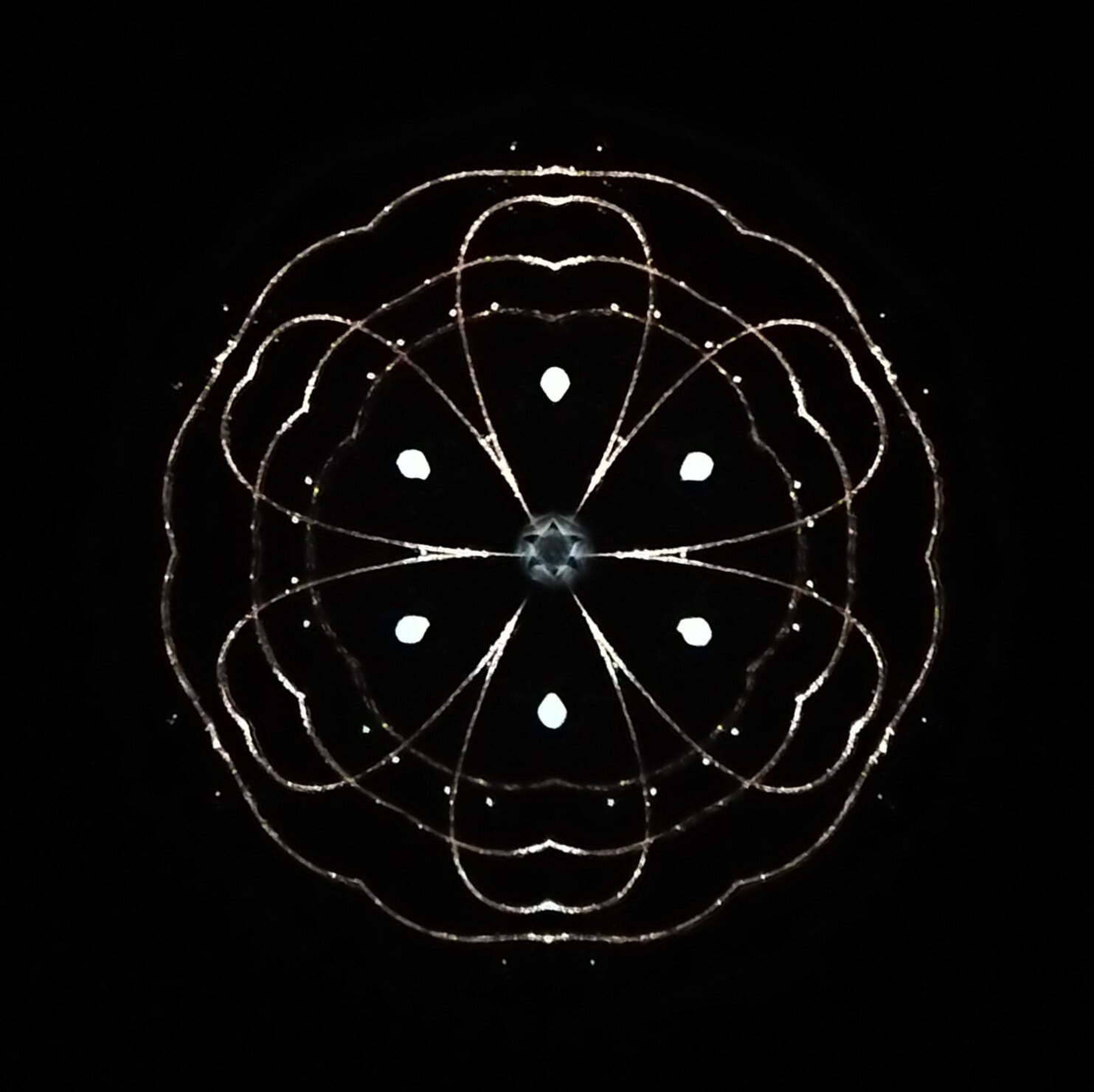 透明と白と金色の、ほんの少しのオブジェクトが高濃度のグリセリンの中でゆっくり動き変化してゆきます。