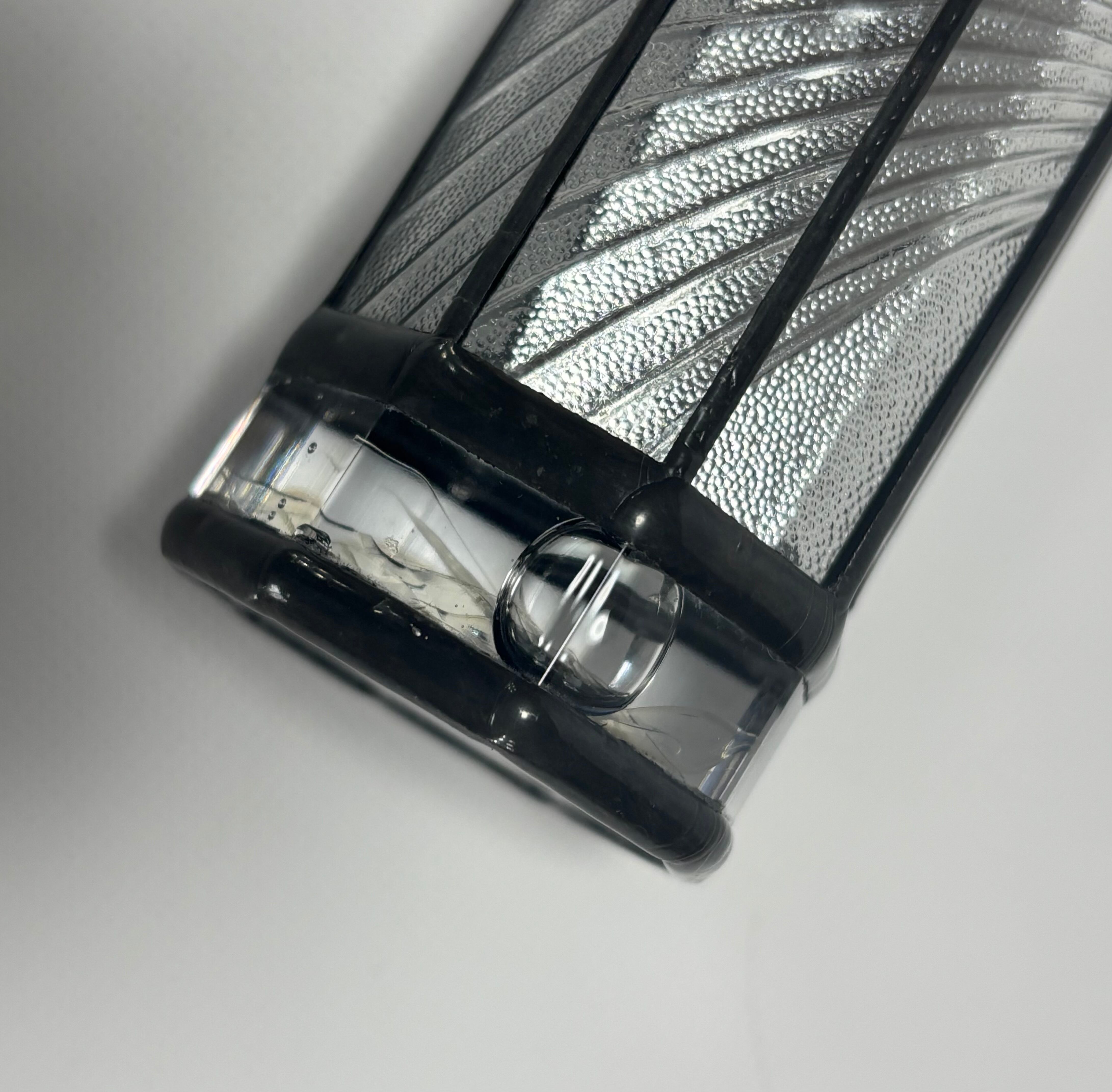 光の当て方によって、薄っすらミラーのシルエットが見えます。